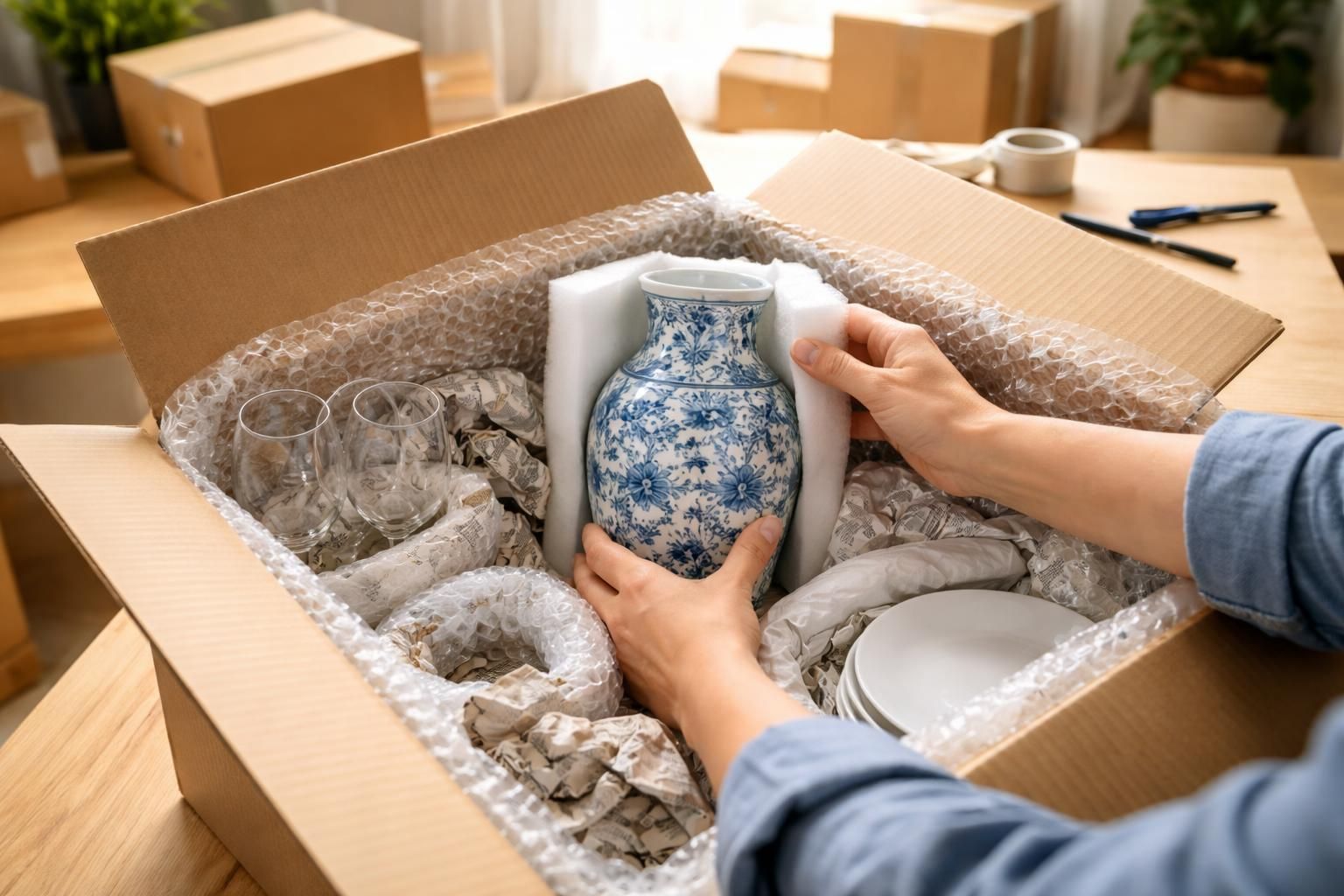 | Vaisselle et objets fragiles | Papier bulle ou protections en mousse |