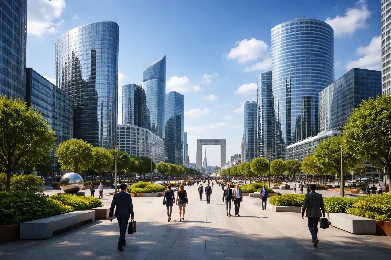 Un autre aspect marquant de La Défense est l’intégration de l’environnement dans ses constructions. La plupart des bâtiments suivent des normes écologiques strictes, visant à réduire leur empreinte carbone. La combinaison d’esthétisme et de durabilité fait de ce quartier un modèle de l’urbanisme moderne, où technologie et nature coexistent. Sur le parvis, les visiteurs peuvent également découvrir des œuvres d’art exposées en plein air, ce qui ajoute une dimension culturelle à cet espace d’affaires.